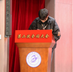 总站长、主任、总队长联合决策委员会联合总长史朝怡代表发言,她说回顾这两个月的工作,从开学初的纳新到各方面的见习干事培训,为新一届的学生干部提供了学习的机会和进步的.空间。为易班注入了一批有责任心、踏实、肯干的新成员,为我们的团队建设打下了基础。我们都坚持有工作一起完成,有困难一起解决,有活动一起参与,有责任一起承担,坚决不落下任何一个成员,这就是我们的团队精神。作为学长、学姐的我们更应该和他们一起完成每一项工作,不断提升自己的服务意识,而不是抱着手指挥,因为只有这样我们才能真正凝聚在一起,提高我们的工作效率和团队合作能力。